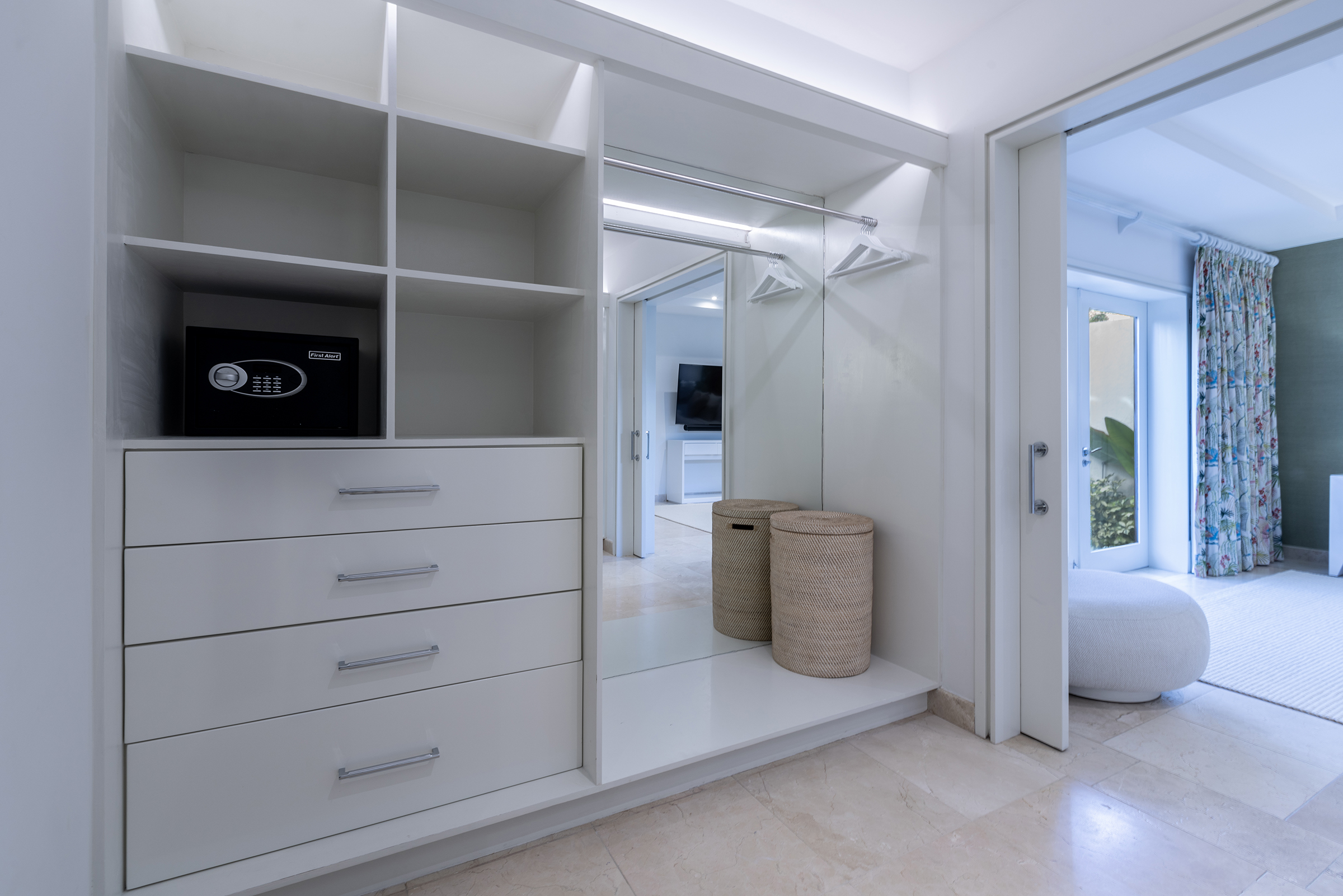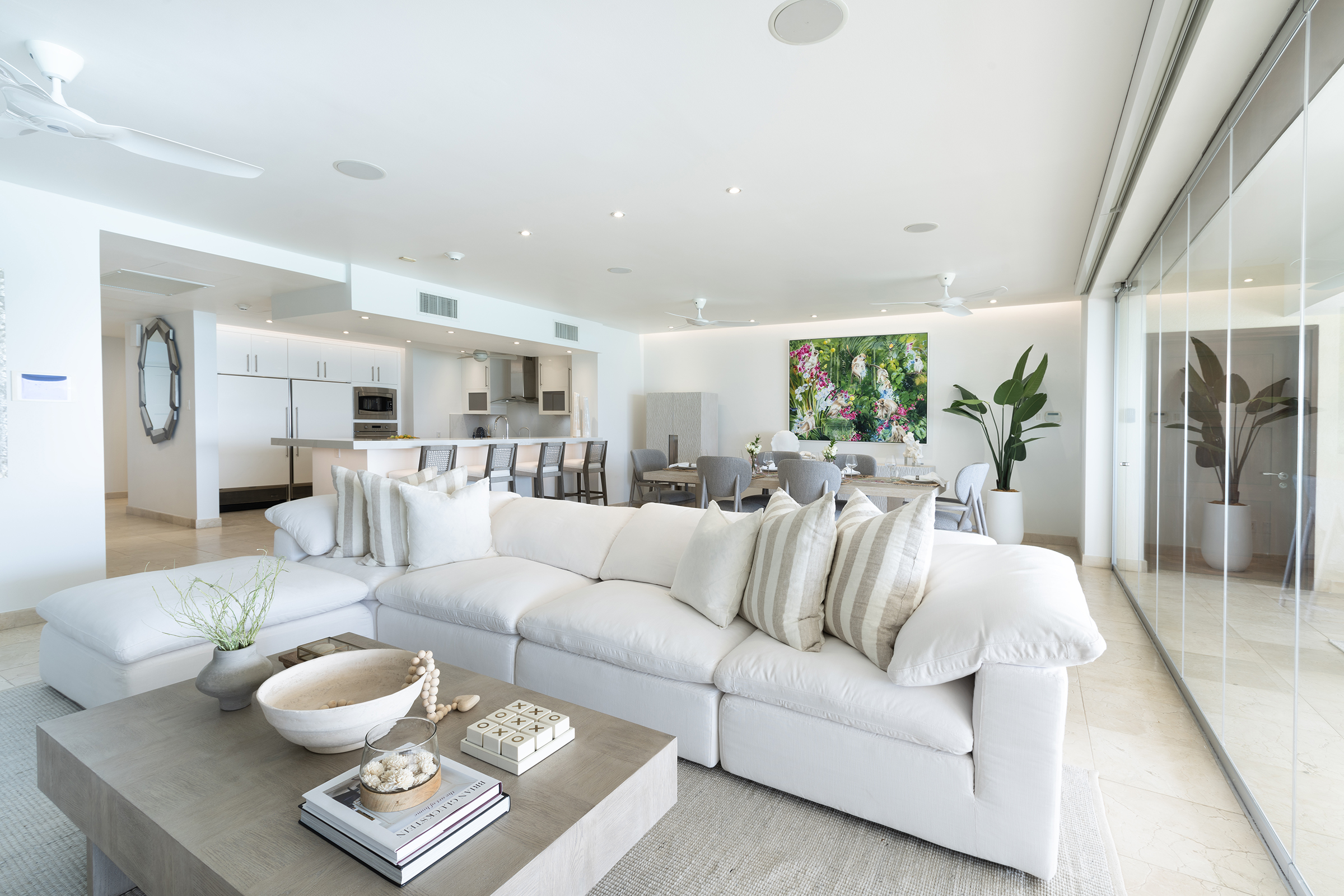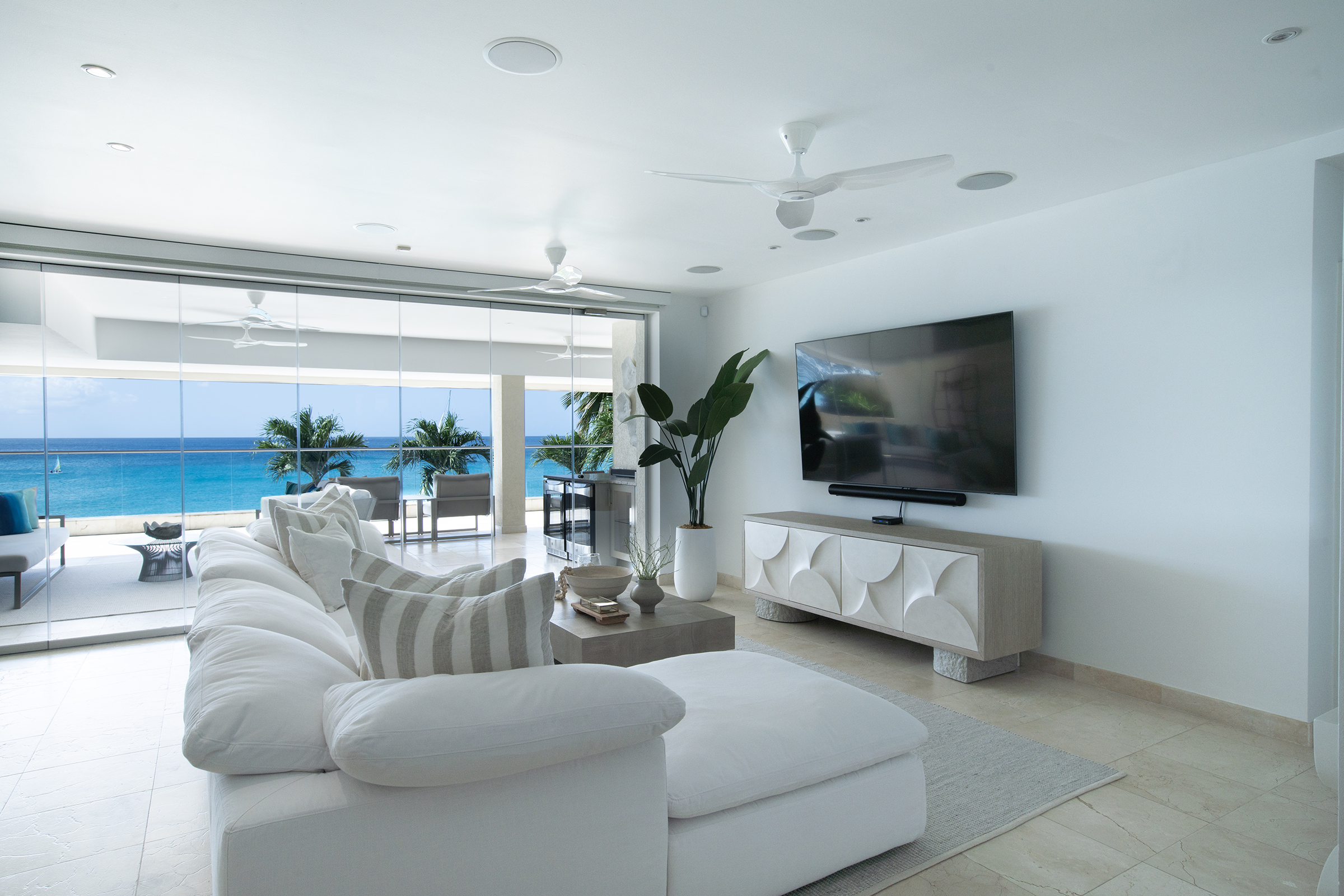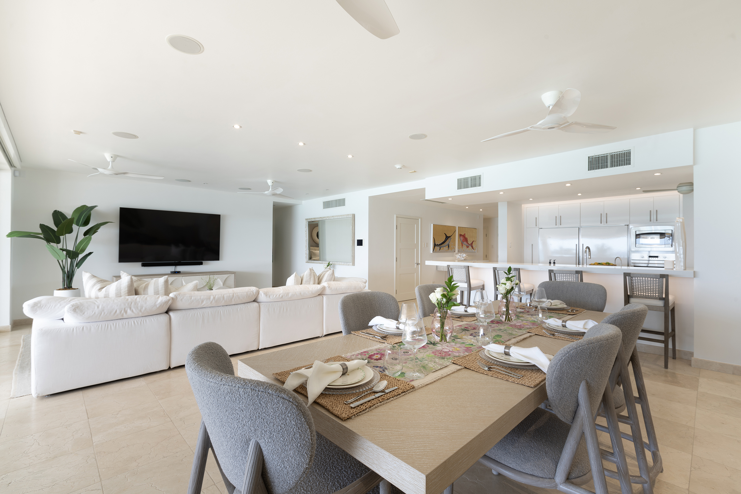 Dive right into a luxurious getaway in Barbados when you choose this gorgeously appointed condo for your stay. Casa P is located mere feet from the water, something you’ll be reminded of every time you walk into the spacious living area. With panoramic, floor-to-ceiling windows that offer a brilliant view of palm trees and the water, you’ll feel as though you are directly on the water every time you open your eyes.