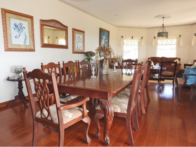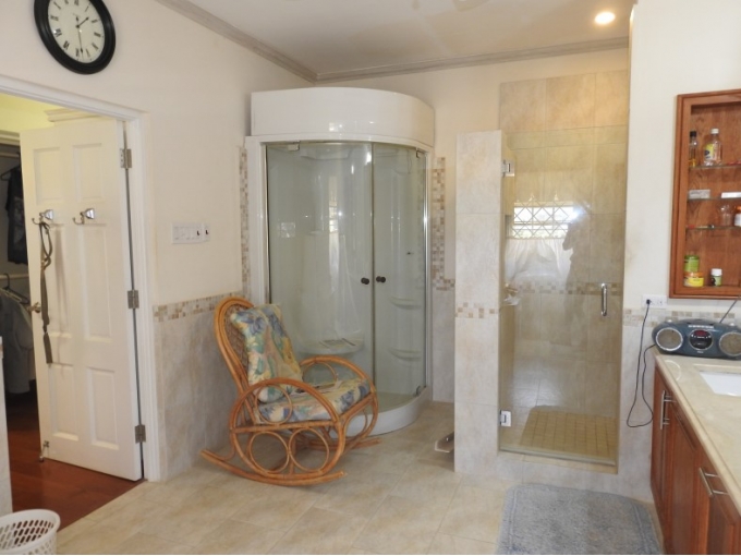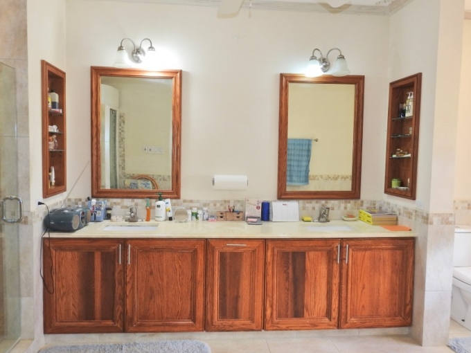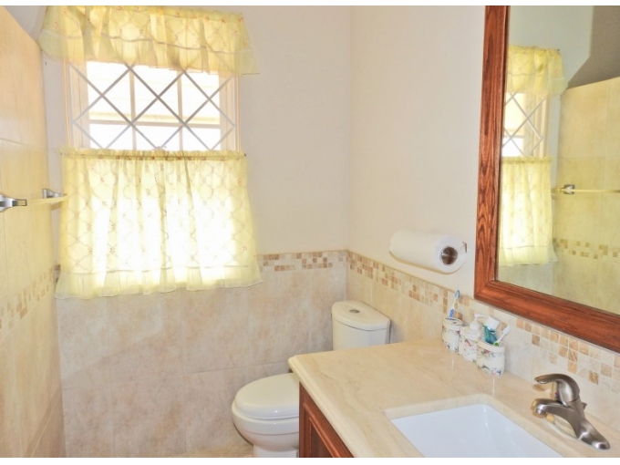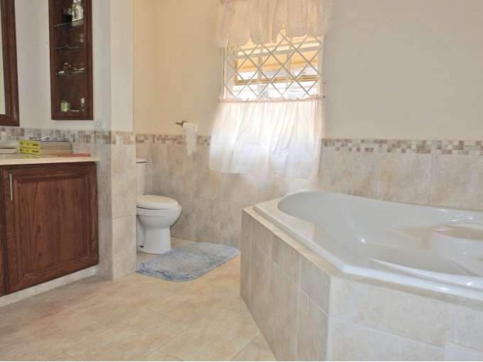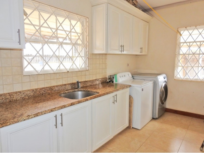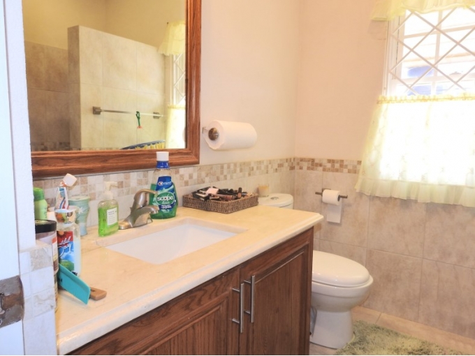 All windows are fitted with burglar bars, hoods and shutters. There is a backup generator on site which automatically powers the entire house in the event of power outages. The house also comes with two 3000 gallon water storage tanks. In addition to burglar bars there is also a security monitoring system installed for added safety. The house is fully enclosed and yard fully paved. The large driveway can hold quite a few vehicles.
