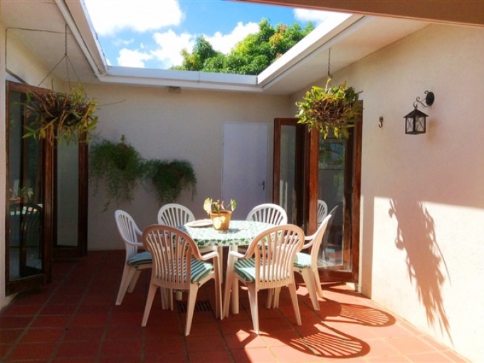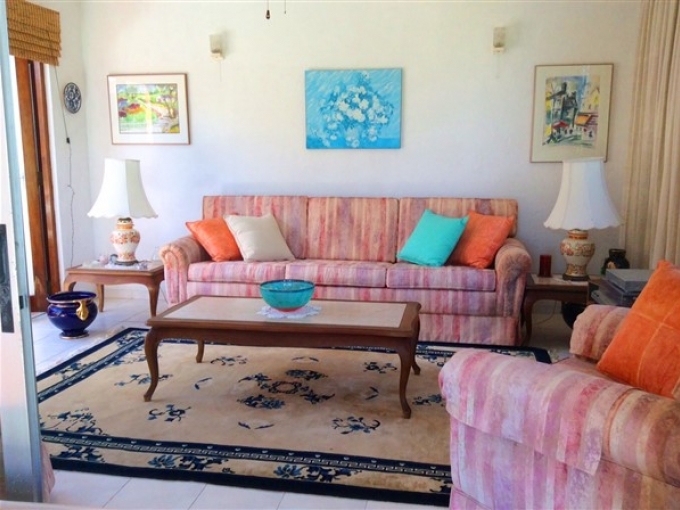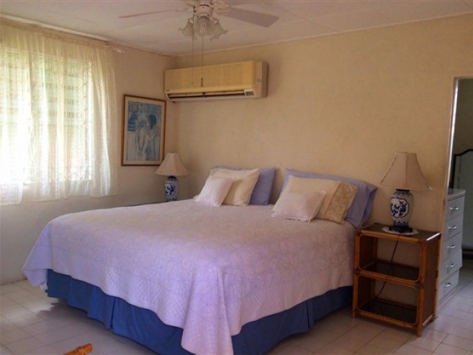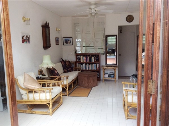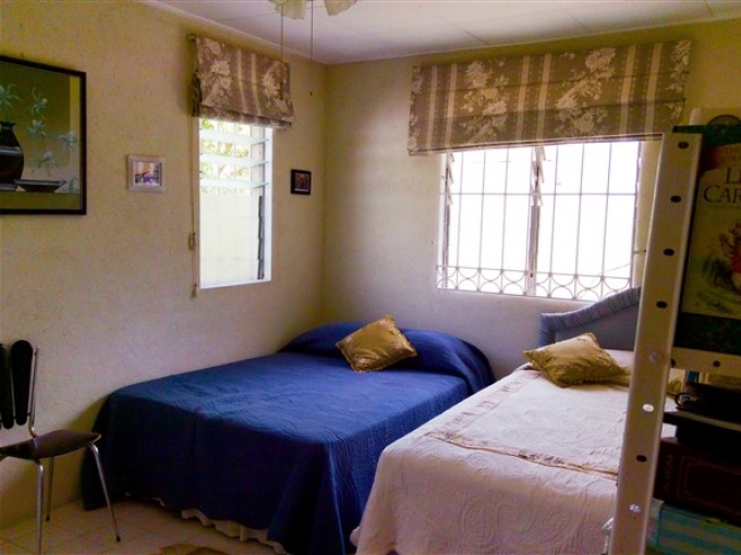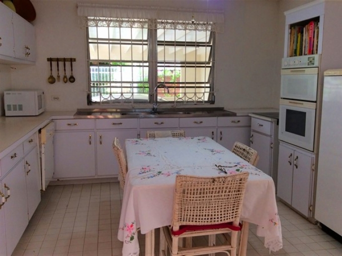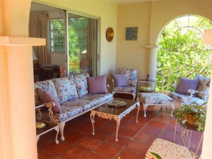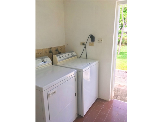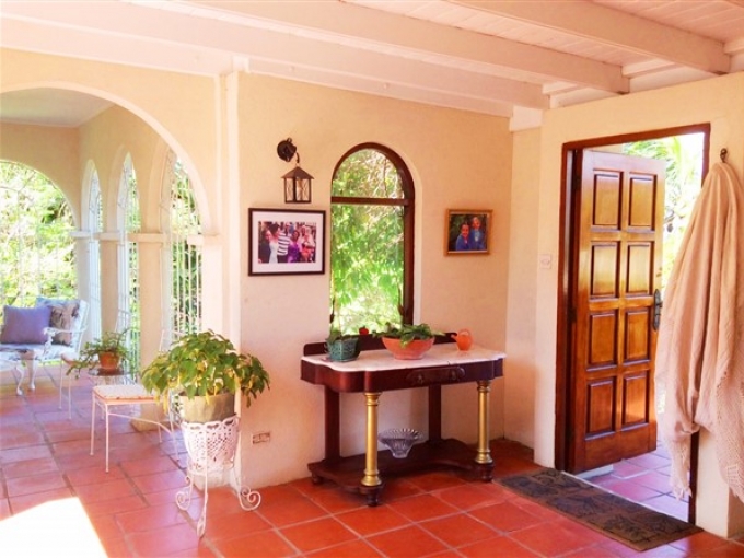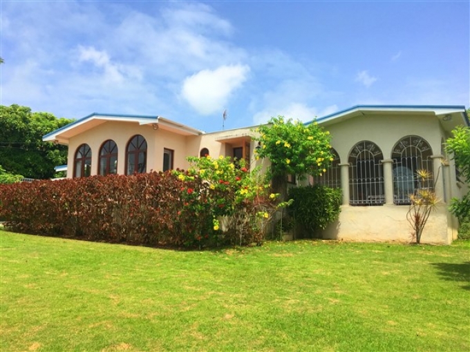 Built in 1978 this charming 3 bedroom, 2.5 bathroom elevated villa on a nice sized lot with sea views from several rooms. This unique Spanish styled design, with rooms wrapped around an open patio has to be seen to be appreciated. The house centers around a small courtyard, making it bright and airy. Upon entering from the covered 2 car garage, the first room is a tv room/den which opens onto the patio through a French window. Adjacent is the large kitchen, which also has a door leading to the courtyard. The front is accessed up a flight of red brick stairs to the entrance hall. Off the hall is the ample formal dining room with windows all around and views to the sea on a good day. On the other side of the courtyard overlooking the garden is a wrought iron enclosed verandah with a good sized living room just behind. Opposite the TV room/den and through a matching French window the living room leads into the courtyard. At the rear of the house are the three bedrooms, with the master having an ensuite toilet and bath. Behind the garage is a laundry room which provides access to the back yard and storage shed. There are plenty of fruit trees, including coconut, soursop, cherry, lime, Jamaica plum and golden apple to name a few. This house has charm and character. There is planning approval for an extension. Warrens and all of its amenities are a five minute drive away.