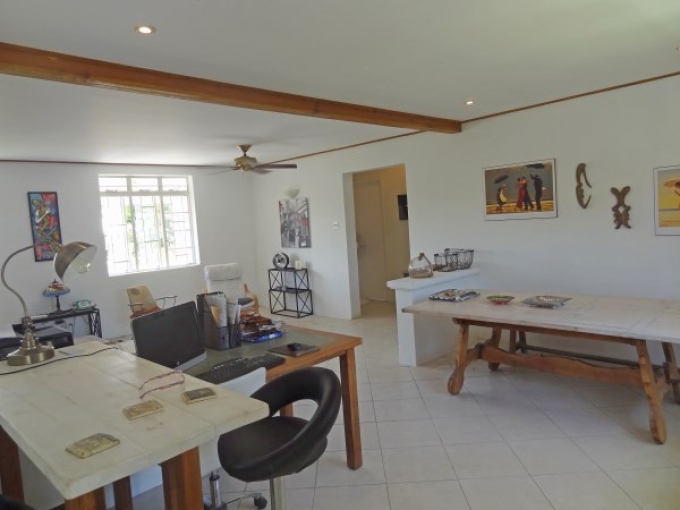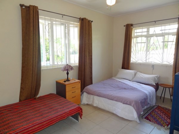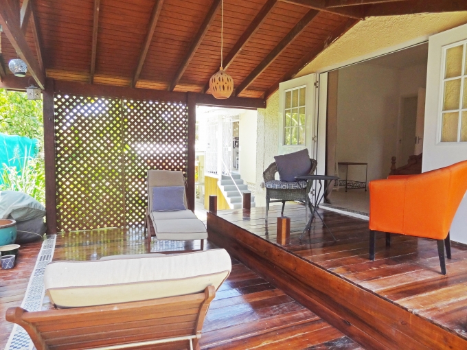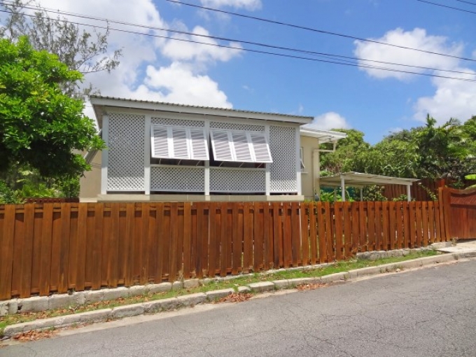 A recently renovated and very spacious 3 bedroom, 2 bathroom family home situated in an upmarket neighbourhood. A large elevated sheltered front patio ideal for entertaining with demerara windows flows informally into the kitchen complete with major appliances, a breakfast bar and attractive pickled pine cupboards including a pantry offering additional storage. This flows easily to a huge open plan living and dining room offering lots of natural light, high ceilings, recessed lighting and providing a further access out to the sheltered patio. The 3 bedrooms are all conveniently to the eastern side of the property and feature ceiling fans, a/c units and built-in cupboards. The master bedroom is approximately 16 x 10 with an elegant en suite bathroom with a shower and vessel sink, and this flows out to a large sheltered split level and breezy wooden deck which is very private and ideal for relaxing. The other two bedrooms are about 15 x 10 and 12 x 10, and they share a nearby bathroom with a shower in it. The lower level of the property is somewhat unfinished but offers a wide array of possibilities. There are large separate rooms and a basic bathroom in place already making it suitable to be utilized as a home office, play room, massive storage area or even incorporated into a separate apartment that could provide some rental income. The laundry is presently in this area as well. The property is fully enclosed primarily with attractive wooden fencing and is nicely enhanced with security grills, some mature fruit trees and a single car port, while offering plenty of additional parking to the other side of the lot. Many amenities, schools and overseas Embassies are very close by, while wonderful south coast beaches are but a short drive away. Land Area: 7,125 sq.ft. House Area:2,790 Sq. Ft.